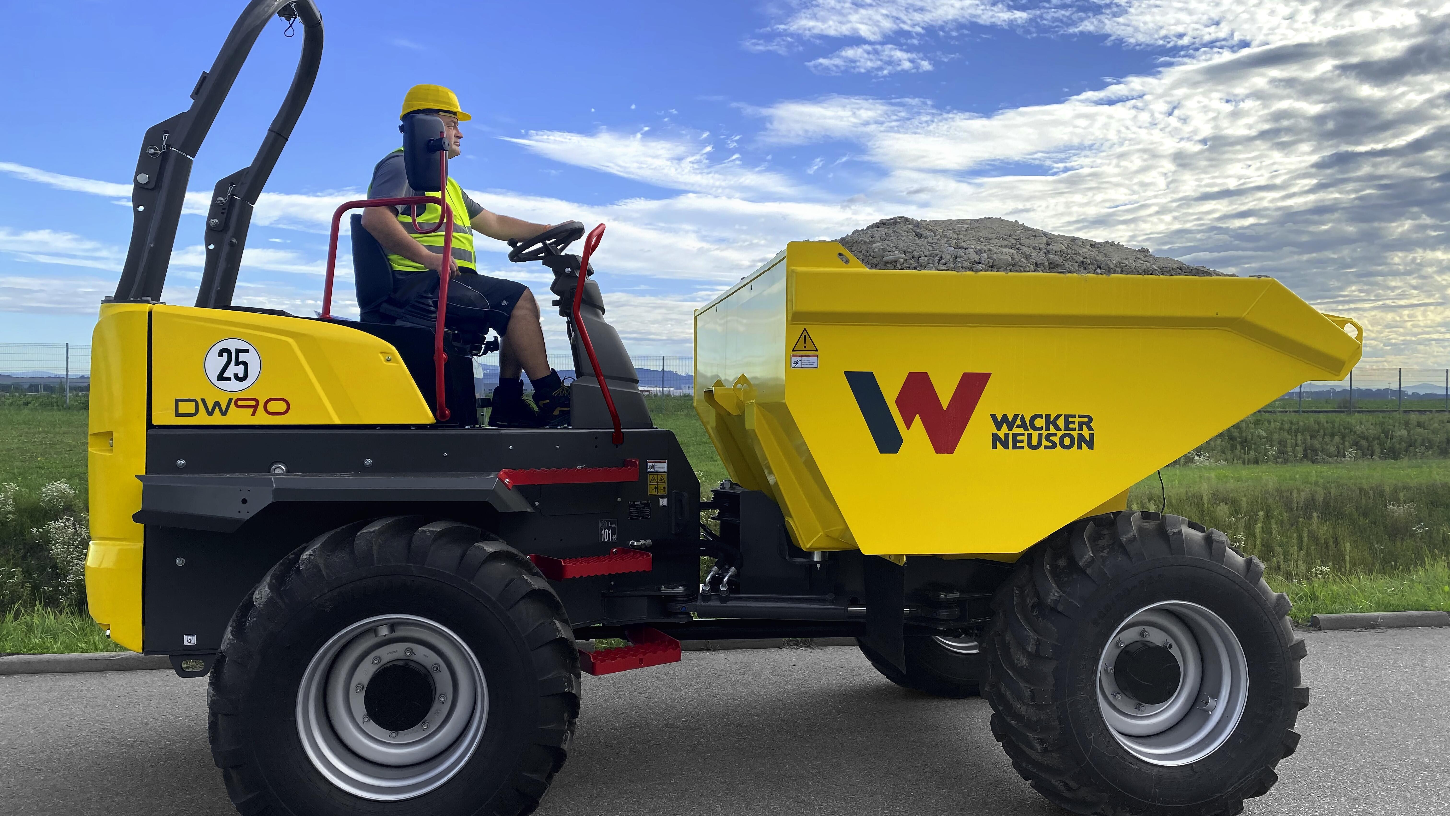 Wacker Neuson presents new versions of the two biggest wheel dumpers: the models DW60 and DW90 convince with impressive additional options, improved safety features and even more comfort. Combined with sophisticated equipment features such as the hydrostatic 4-wheel drive with automatic ECO mode and auto-stop function, working even more economically is possible with these dumpers.