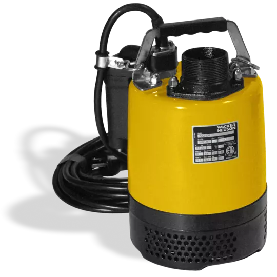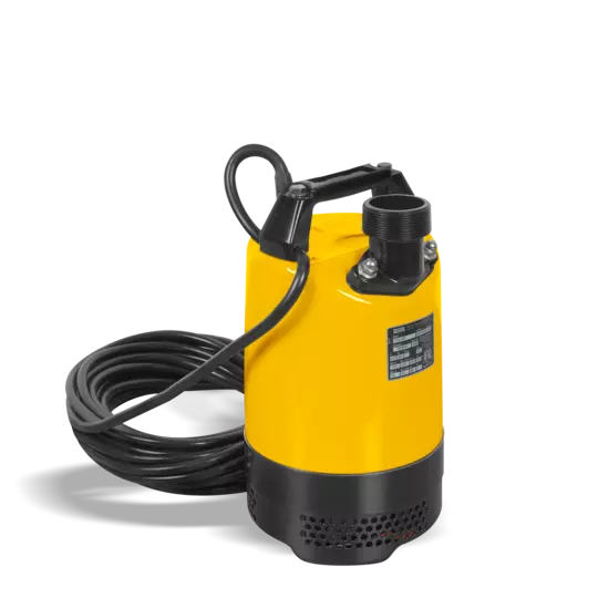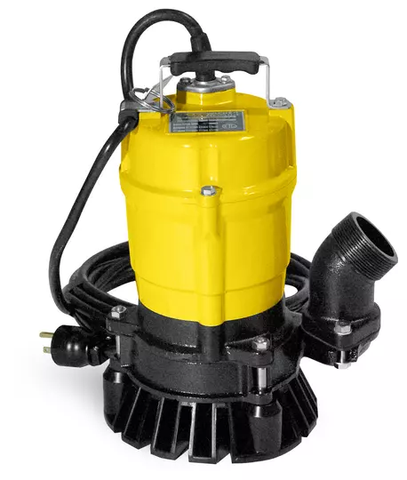 Pompe submersible à courant alternatif avec sortie d’eau latérale, accouplement Storz 2 pouces, fiche Schuko.