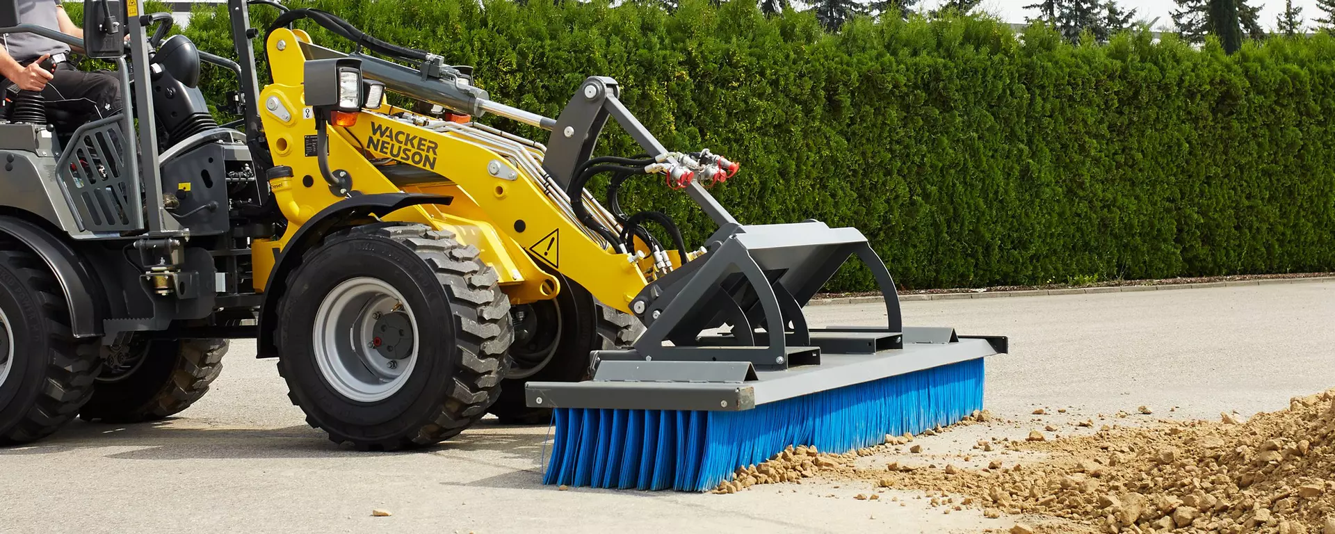 La fixation simple et rapide permet d'utiliser la balayeuse brièvement entre deux opérations de chargement pour évacuer les restes de matériaux et éviter de rouler dessus